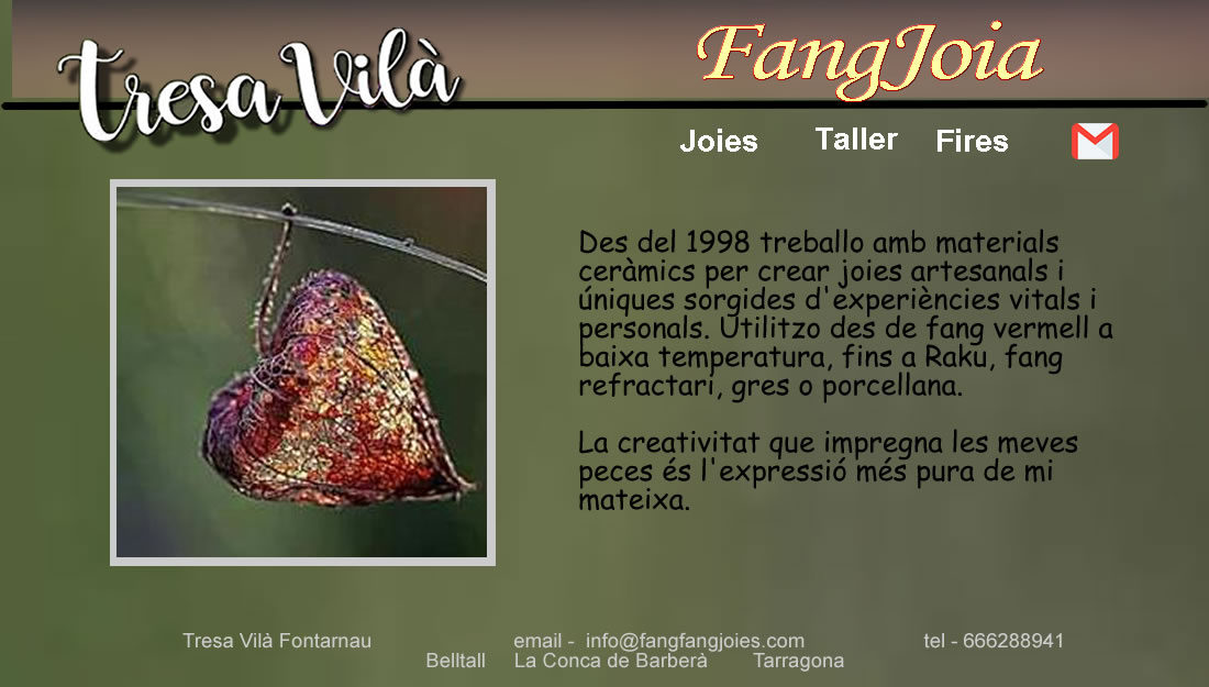 Teresa Vilà és una artesana de Belltall on te el seu taller. Es dedica a la joieria amb fang vermell a baixa temperatura, fins a Raku, fang refractari, gres o porcellana.